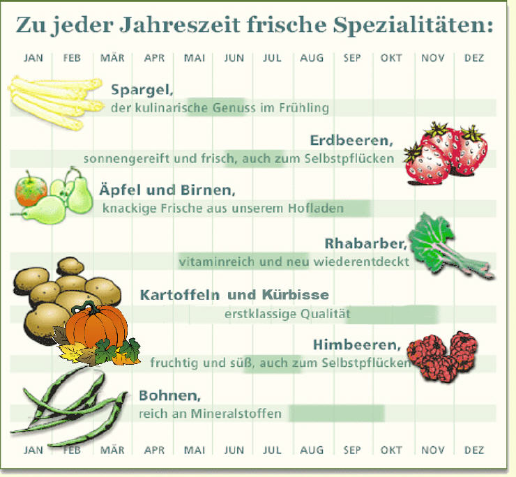 Schauen Sie in unseren Erntekalender und entdecken Sie welche Spizialitäten wir Ihnen über das ganze Jahr anbieten.